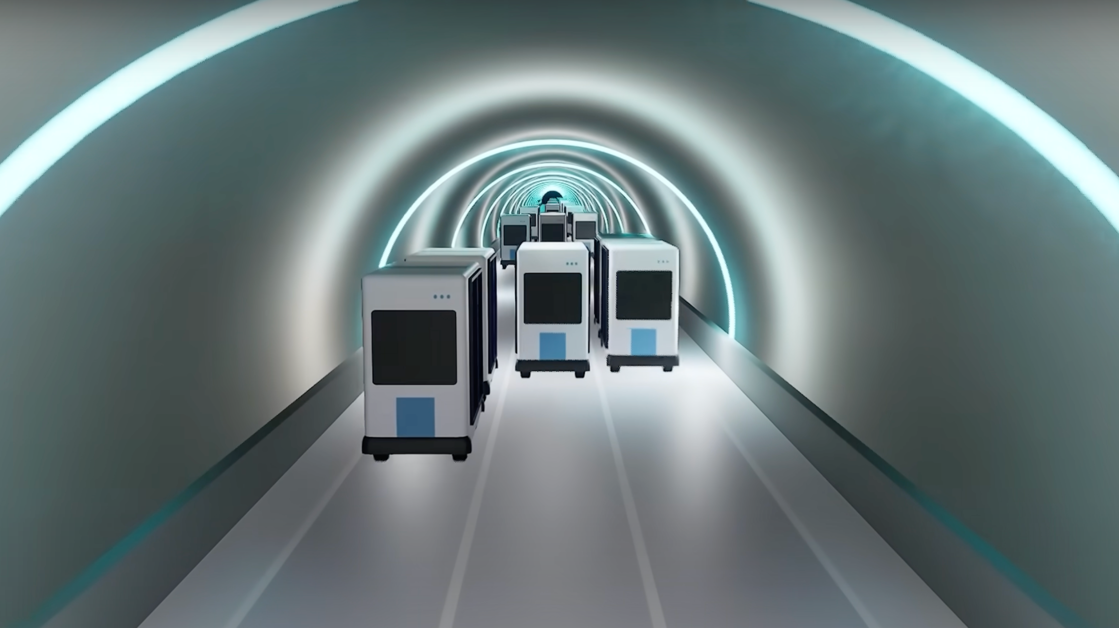 An official concept video shows dozens of the cargo pallets traveling across the autoflow road, which is split into three lanes and sits between an existing highway.
