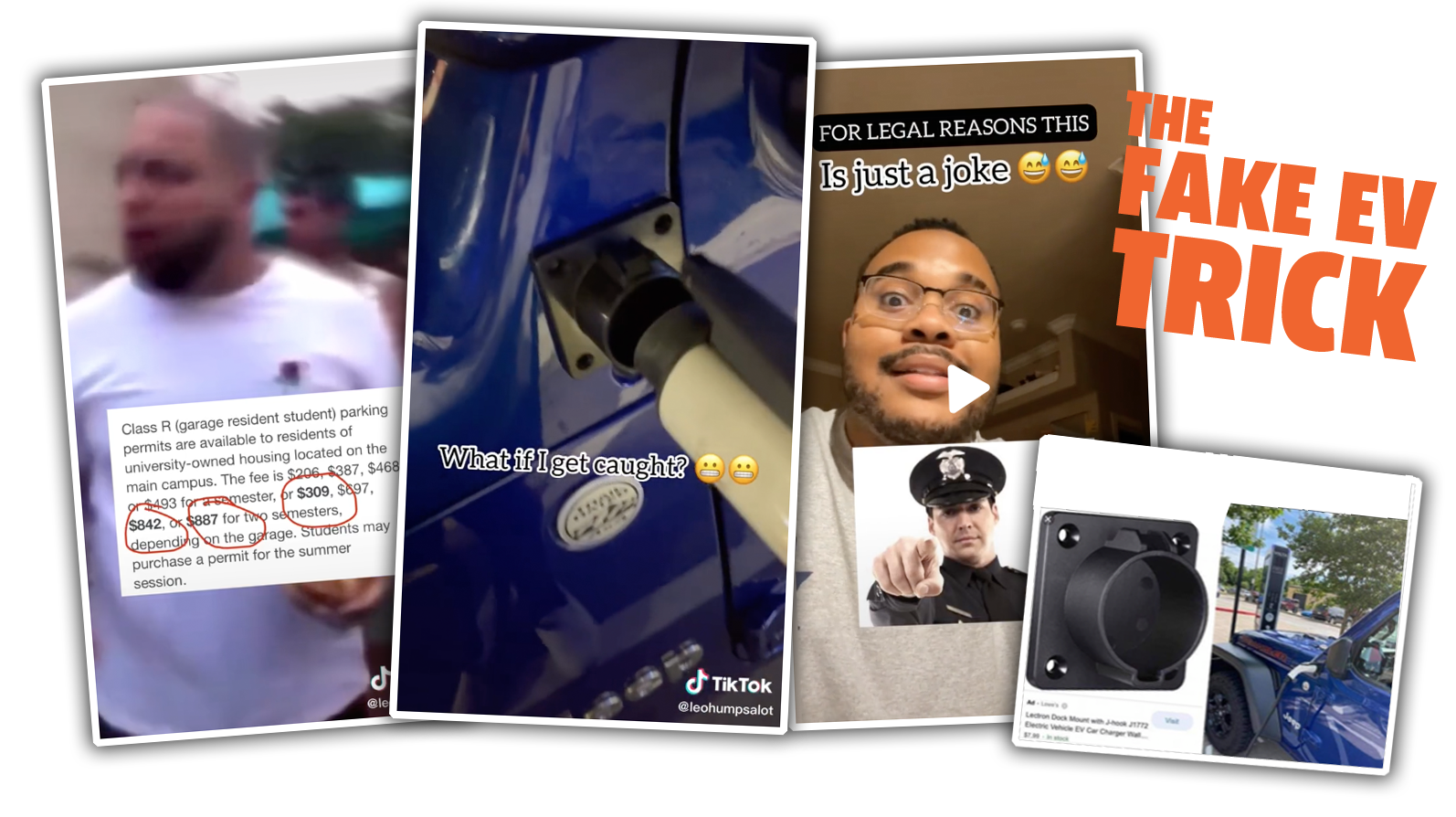 I can't say that I approve of this, or even think it's actually a good idea, but I have to admit it's a clever idea. There's a Jeep owner who attends Texas Southern University in Houston and who, understandably, doesn't really want to pay the high prices for a campus parking permit. He noticed that EVs get to park for free in the provided EV charging spots. His Jeep isn't one of the new plug-in Hybrid Jeep 4xes, so it can't park in a charging spot. Or can it? This dude figured out a way, via the magic of lies.