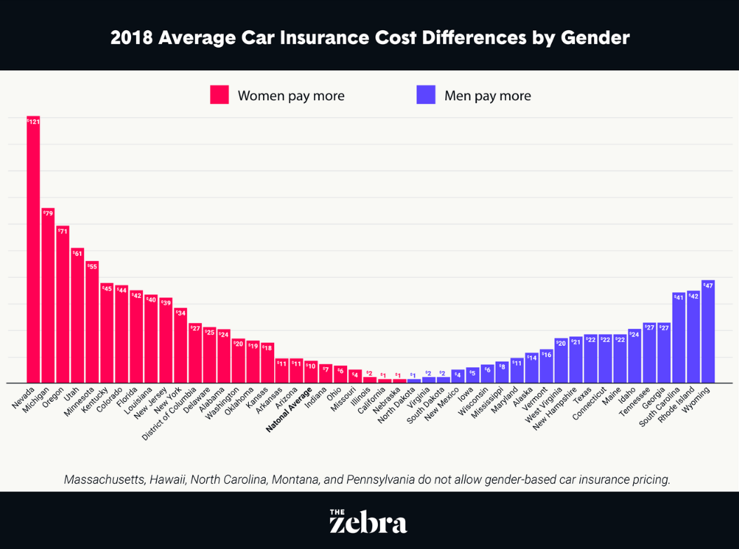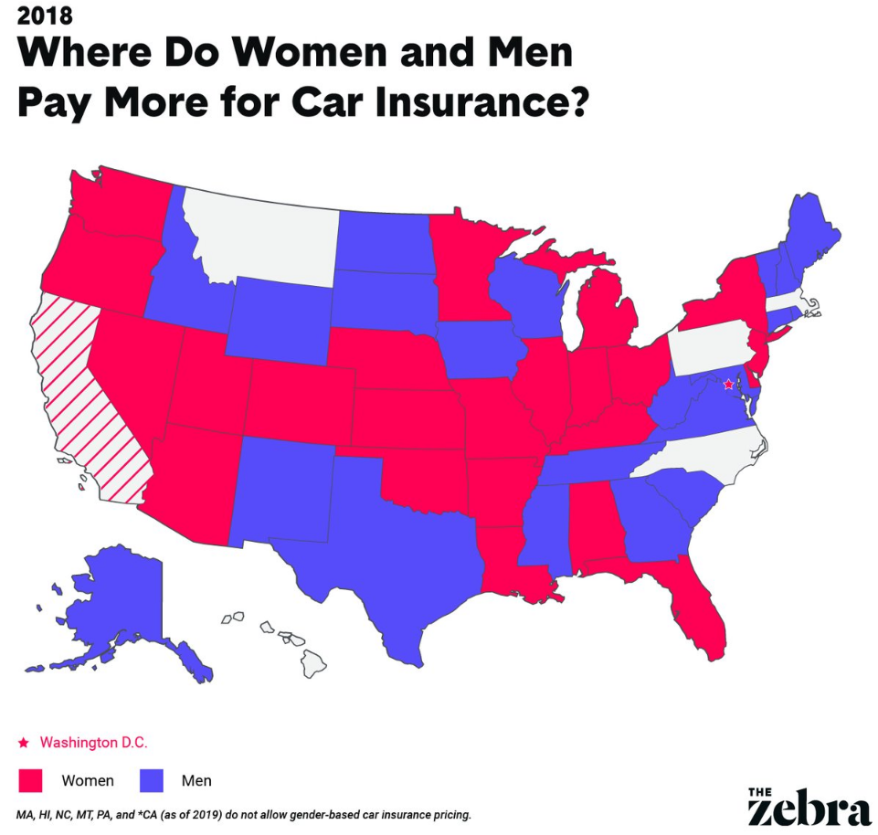 The states that prohibit gender-based pricing as it applies to car insurance are Hawaii, Massachusetts, Pennsylvania, North Carolina, Montana and, most recently, California. "Gender's relationship to risk of loss no longer appears to be substantial, and the logical justification for the statistical relationship to risk of loss has become suspect," California's department of insurance said.