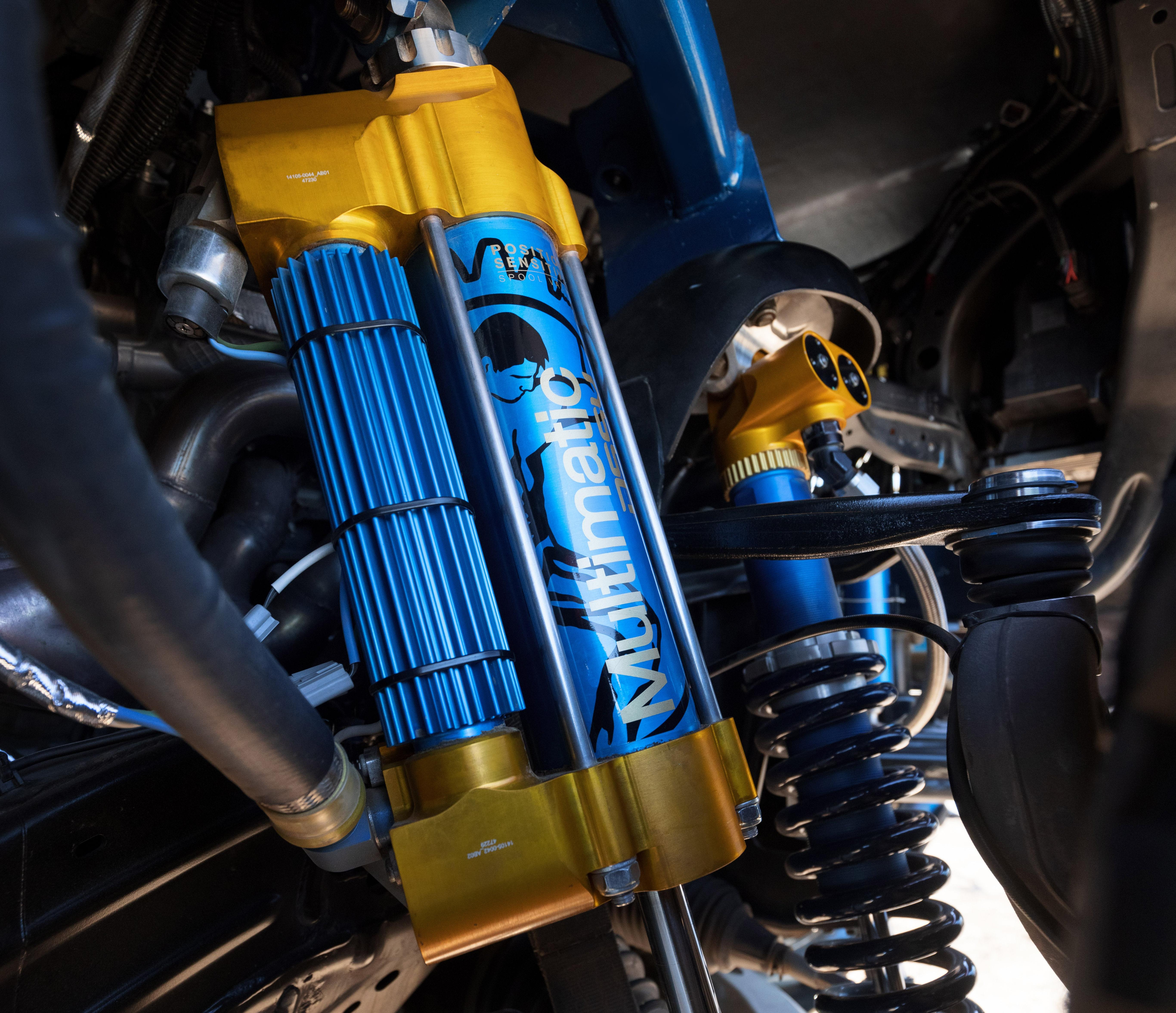 While final specifications will be shared closer to the on-sale date, Bronco DR packs a long list of hardware specifically for off-road desert racing. Longtime Ford Performance collaborator Multimatic has enhanced the Bronco brand-exclusive High-Performance Off-Road Stability Suspension (H.O.S.S.) system, adding Positional Selective DSSV Dampers with 80-millimeter bodies with finned fluid cooling channels, as well as Multimatic-designed billet aluminum lower control arms