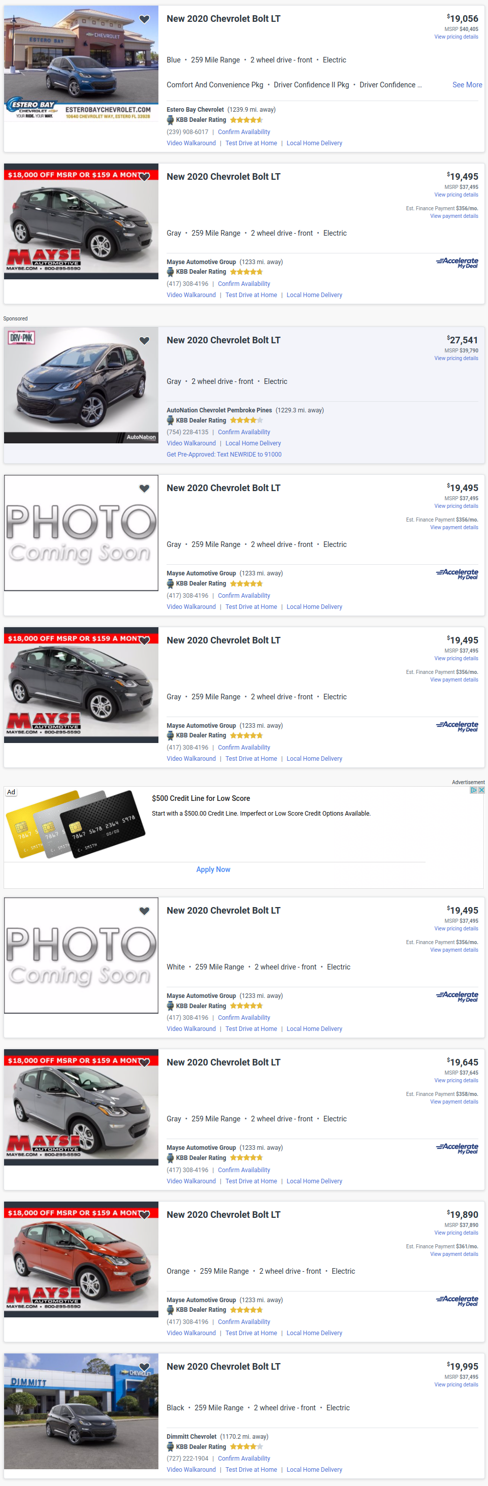 A quick search on Autotrader reveals well over 1000 new 2020 Bolts available for sale, some of which are advertised with pretty substantial discounts that go above and beyond the rebate money.