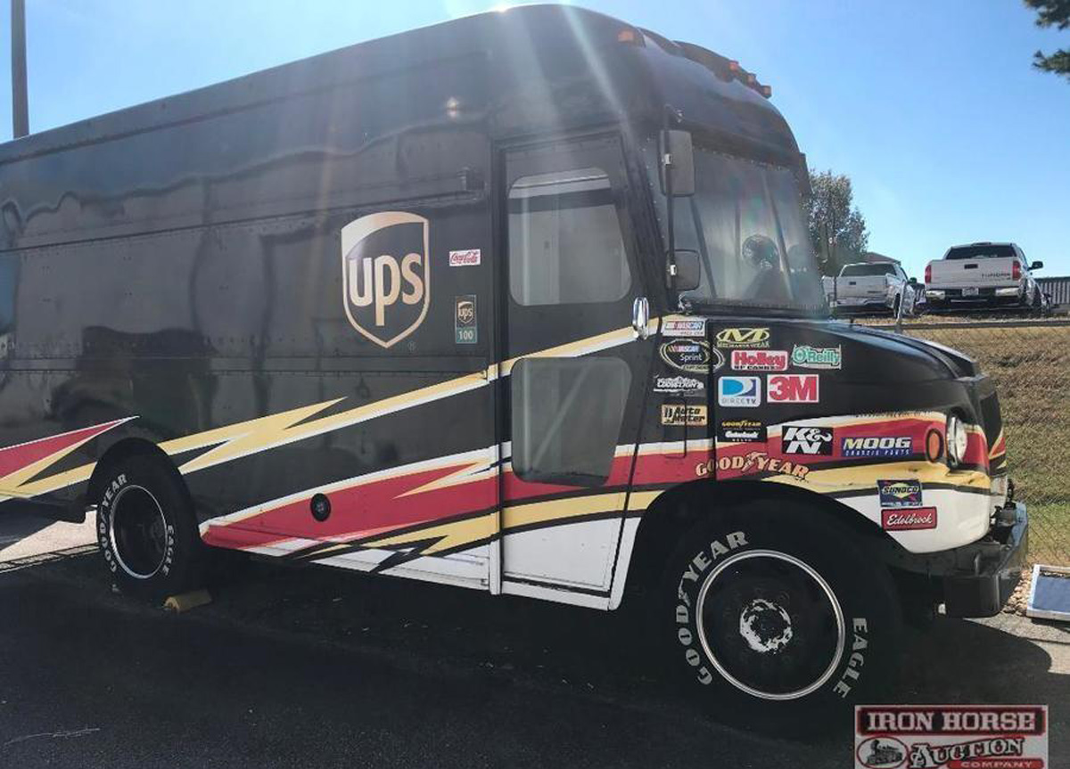 The Dale Jarrett UPS truck was built in 2006 by Mike Ryan, a stunt-vehicle builder, in less than three weeks. His team took a 23-foot-long 1990 UPS P-800 Package Car with more than 300,000 miles on the odometer, stripped it down completely, and transformed it with a fabricated roll cage, a TRD race engine, a custom transmission, racing suspension and shocks, a roll cage and racing gauges, and a racing harness, among other features that have no place in a big brown truck.