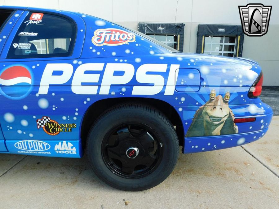 Beneath the wrap, this is a bone-stock 1999 Chevy Monte Carlo. 3.8 liters, four speeds, nothing of particular interest, but that doesn't matter. You can get in this car, pop in your compact disc of The Battle of Los Angeles, and allow Tom Morello's guitar to transport you back to 1999. Do you remember how much more substantial even the cheapest of plastics felt back then? Do you remember what Pepsi looked like? Bring back the old Pepsi logo. Please.