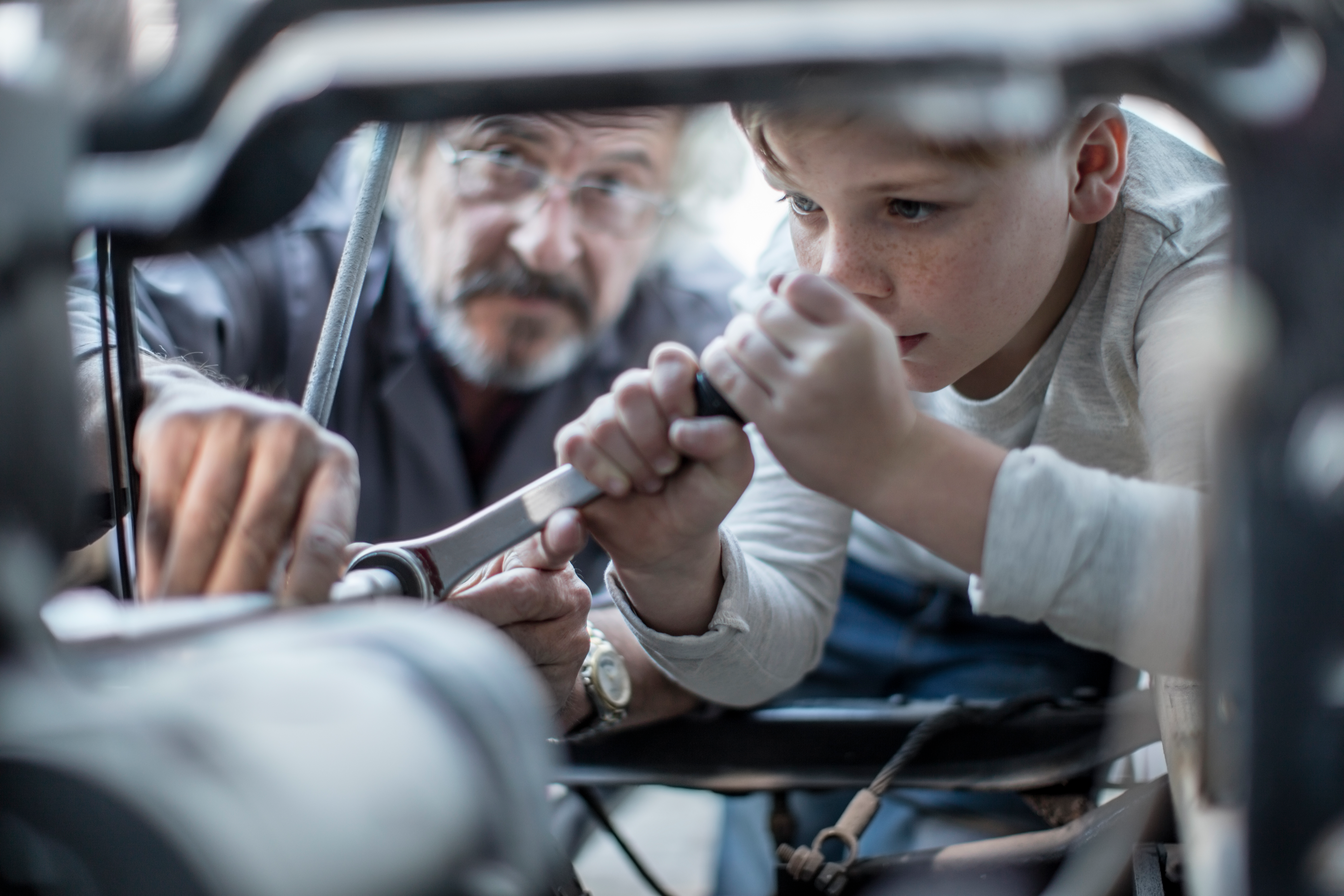 He also taught me what not to do: I remember helping him change a starter on one of our cars and mentioned to him that we hadn't unhooked the battery. He said it would be ok because he was being careful. You can guess what happened then: the hot cable contacted his wedding band while it was also grounded on the engine and instantly turned very hot. It was literally the fastest I ever saw my Dad move, getting the hot wedding band off his finger.