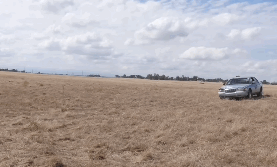 Is it science? Not really. The post says "Video was filmed in a safe and controlled environment" but it seems to just be a field with other discarded vehicles in it. There aren't any rescue vehicles should something go wrong, and the car does seem to veer off track a few times. Also, is that a skateboard being used as a part of the remote driving rig?
